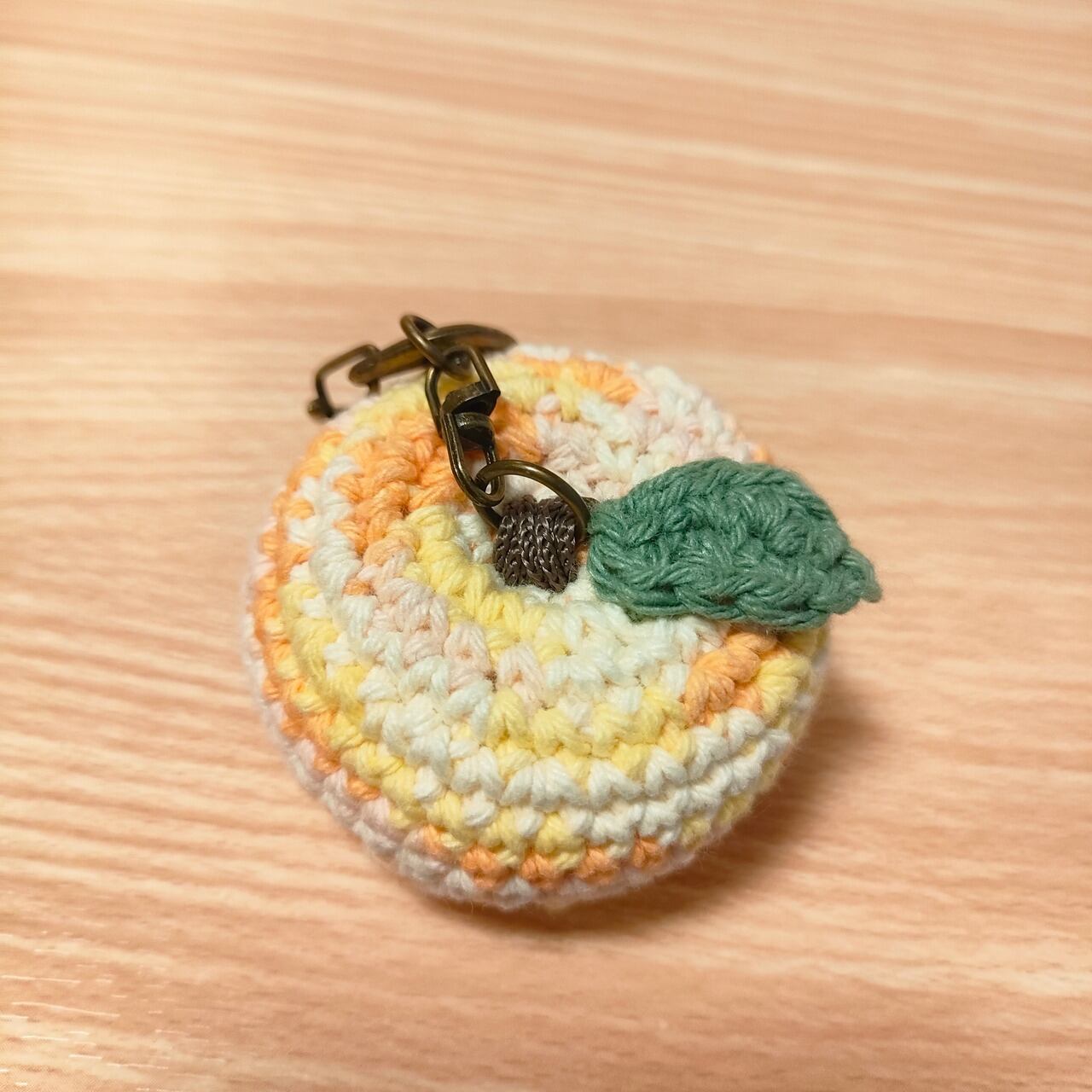 Fresh Citrus Gradient – Mini Apple Keychain, Hand-knitted with Recycled Cotton