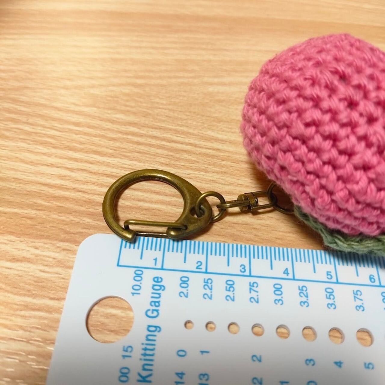 The base of the keychain is securely wrapped with a strong plastic-based yarn, making it more durable.