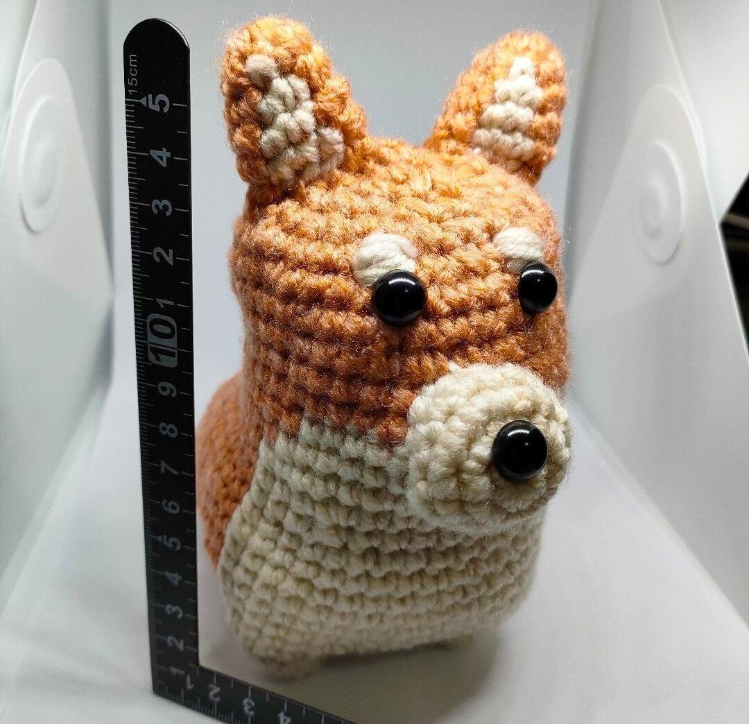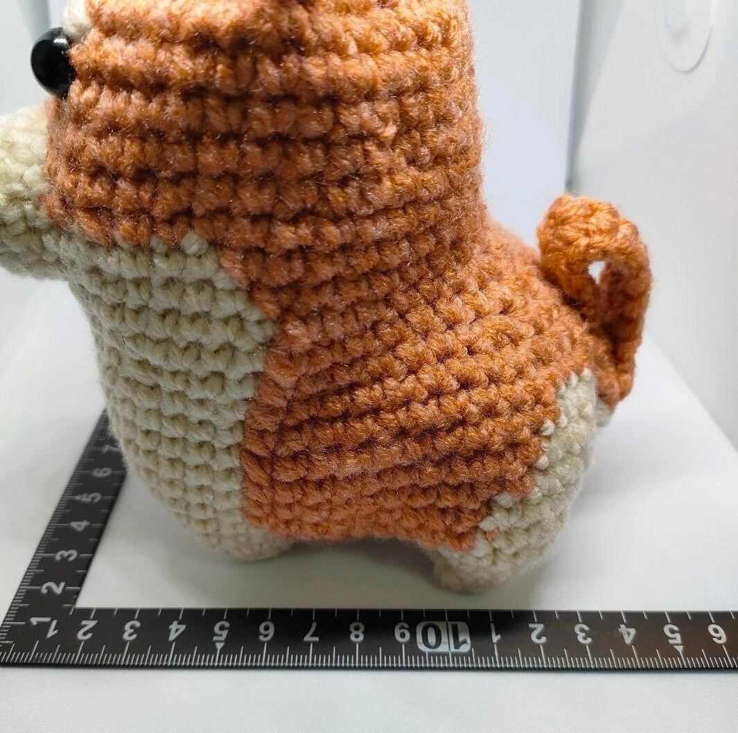 With its round body, gentle expression, and curled little tail, this hand-crocheted Shiba Inu is full of heartwarming character.