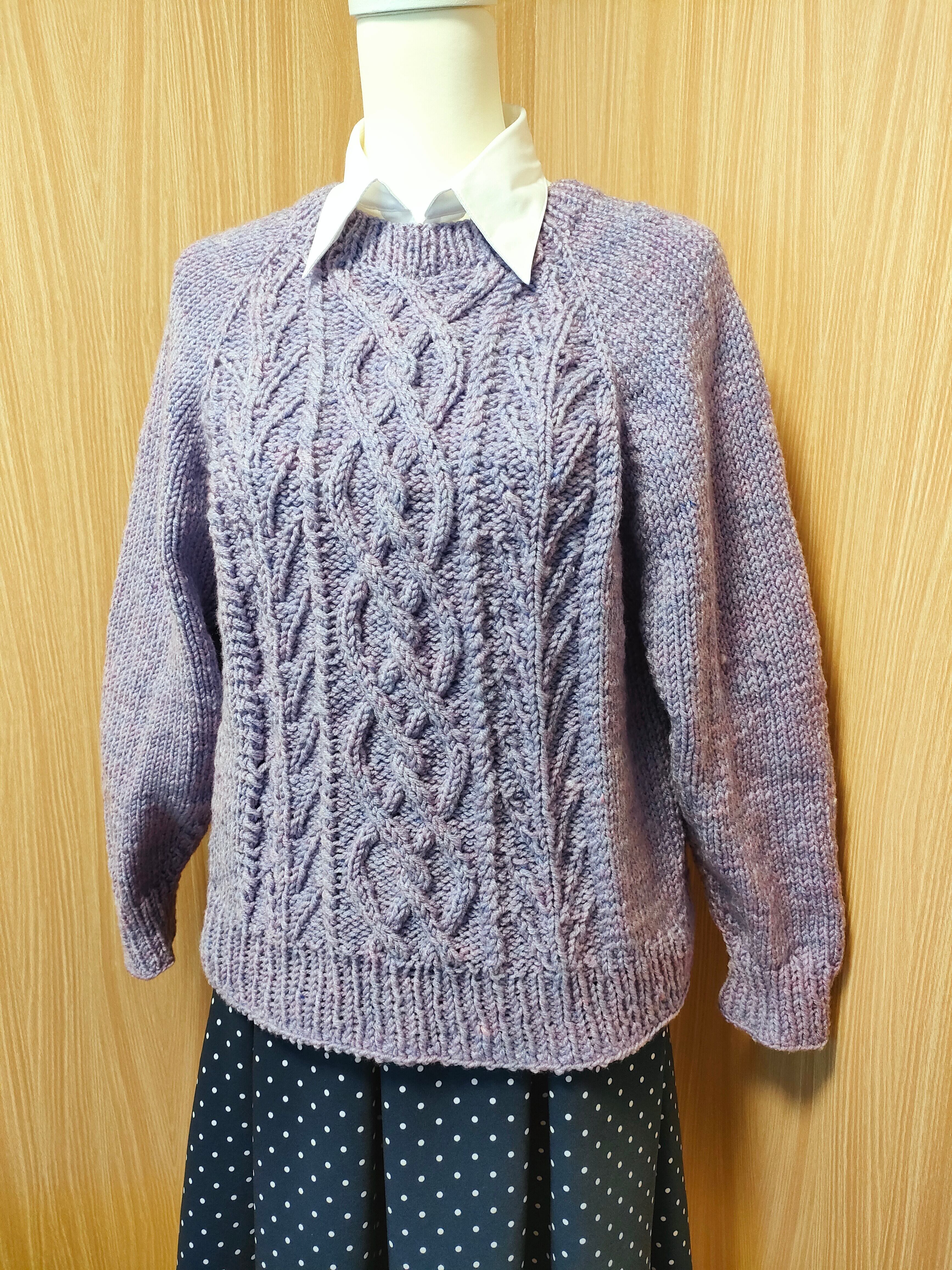 Blooming in Aran Patterns – Hand-Knitted Lavender Sweater