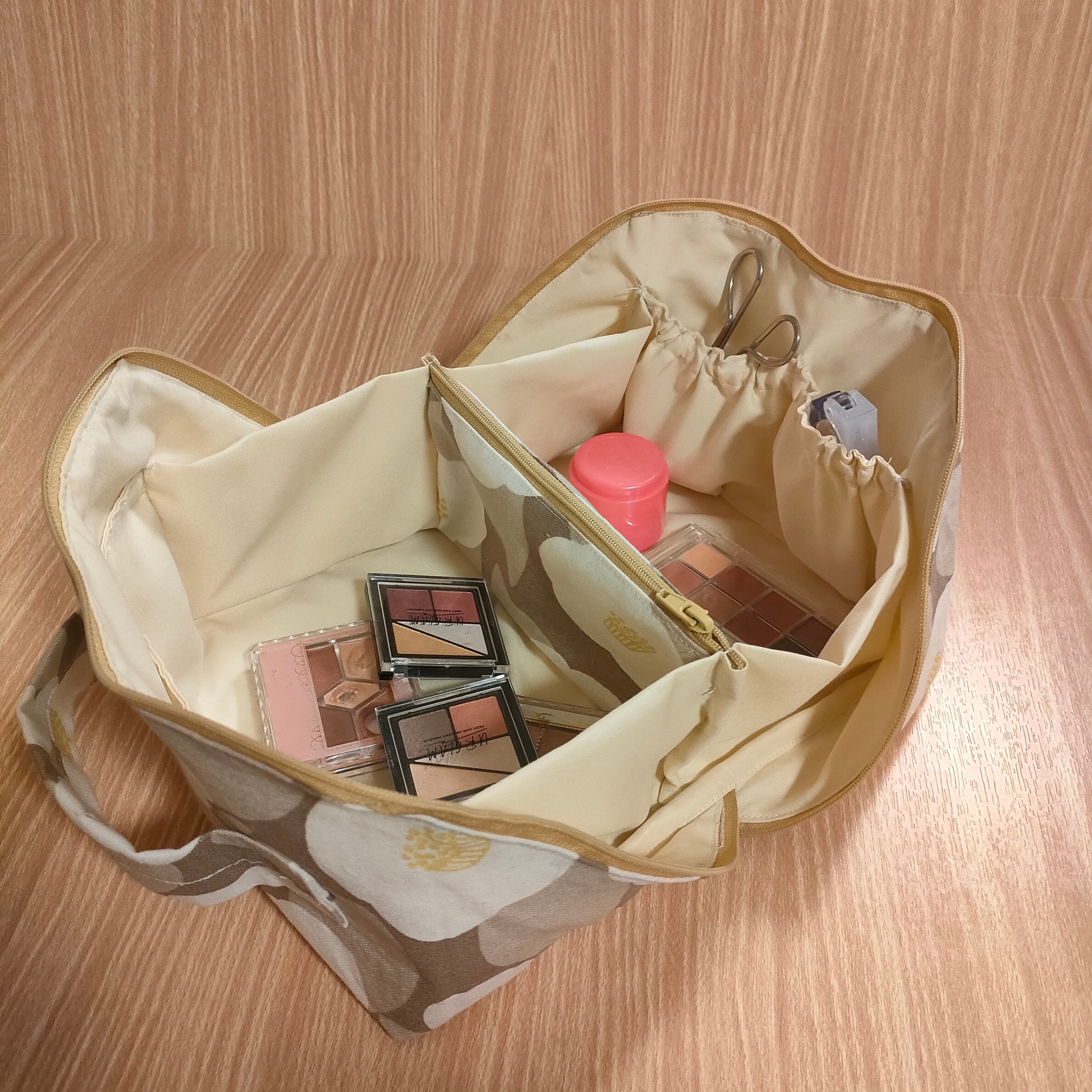 Ideal as a sewing pouch: Neatly stores pincushions, scissors, thread, and more. While you're crafting, it sits upright like a basket, keeping your workspace tidy.